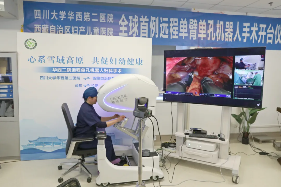 据公开信息,这是全球首例单臂单孔机器人远程手术,不仅是我国在前沿微创技术应用的又一重大突破,更是华西二院援藏医疗事业和国家区域医疗中心建设工作的重要里程碑,为西藏妇幼医疗卫生事业的发展带来了新的契机。手术的成功开展,也标志着精锋®单孔手术机器人正式迈入了远程手术时代。